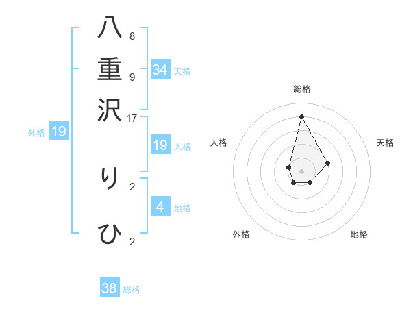 八重沢 りひさんの総格は38画の4点!