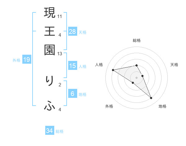 現王園 りふさんの総格は34画の2点!