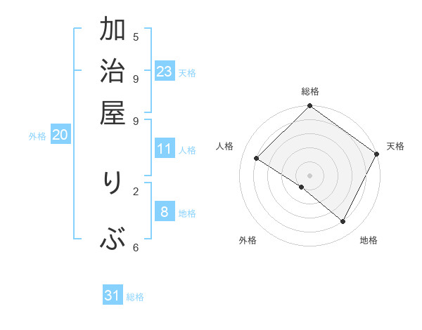 加治屋 りぶさんを姓名の画数から五運を鑑定