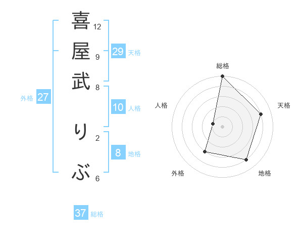 喜屋武 りぶさんを姓名の画数から五運を鑑定