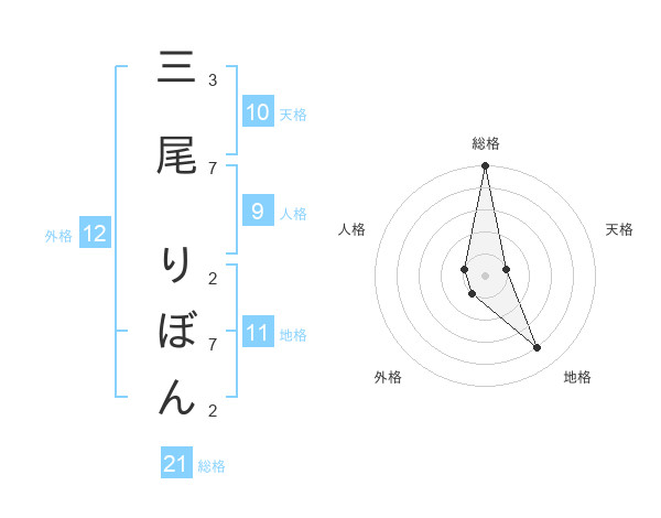三尾 りぼんさんを姓名の画数から五運を鑑定