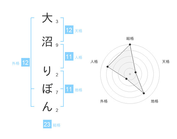 大沼 りぼんさんを姓名の画数から五運を鑑定