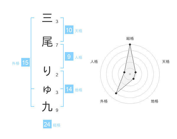 三尾 りゅ九さんを姓名の画数から五運を鑑定