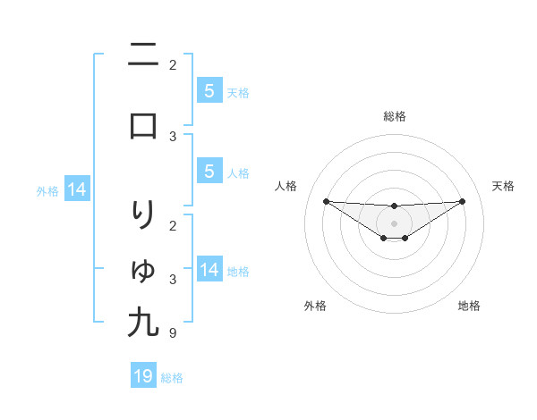 二口 りゅ九さんの天格は5画の4点!