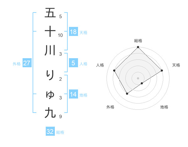 五十川 りゅ九さんを姓名の画数から五運を鑑定