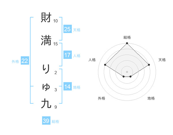 財満 りゅ九さんを姓名の画数から五運を鑑定
