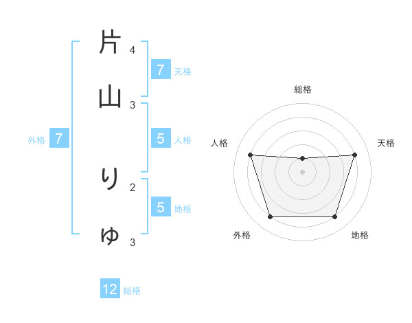 片山 りゅさんの天格は7画の4点!