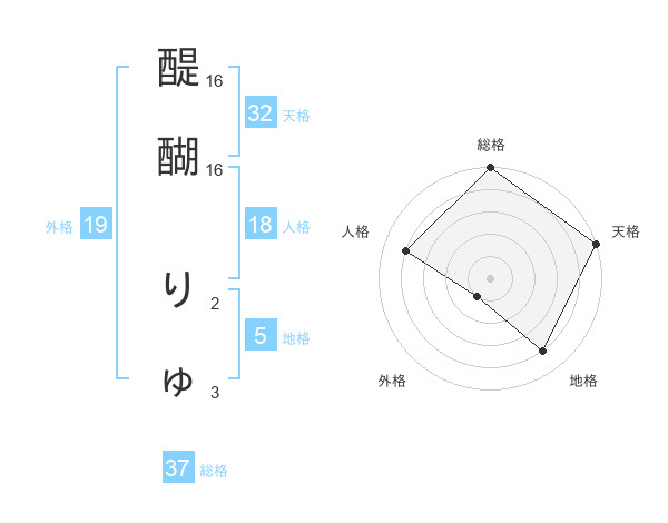 醍醐 りゅさんの天格は32画の5点!