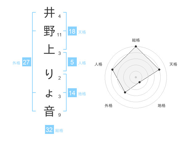 井野上 りょ音さんの総格は32画の5点!
