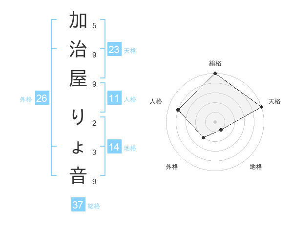 加治屋 りょ音さんを姓名の画数から五運を鑑定
