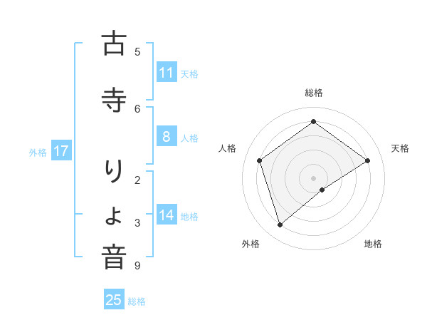 古寺 りょ音さんの総格は25画の4点!