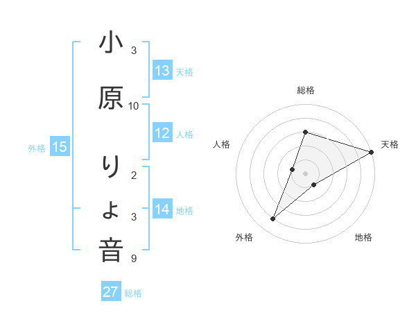 小原 りょ音さんの総格は27画の3点!