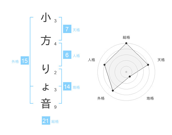 小方 りょ音さんを姓名の画数から五運を鑑定