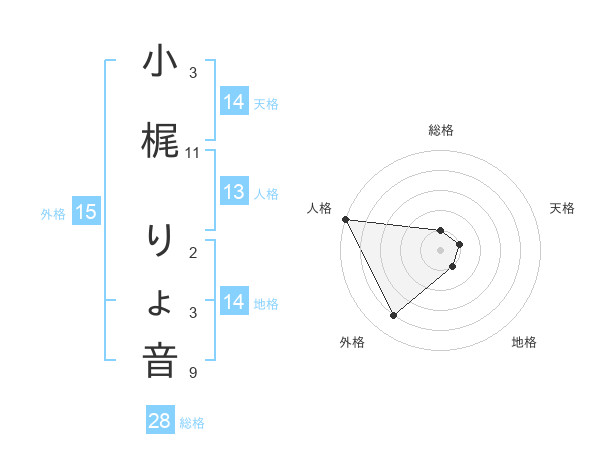 小梶 りょ音さんの天格は14画の1点!