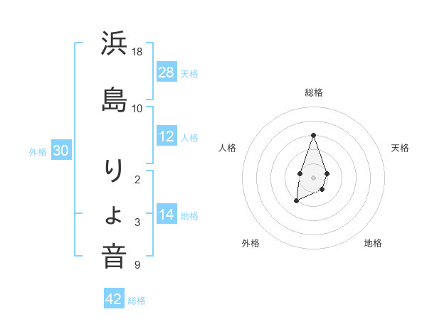 浜島 りょ音さんを姓名の画数から五運を鑑定