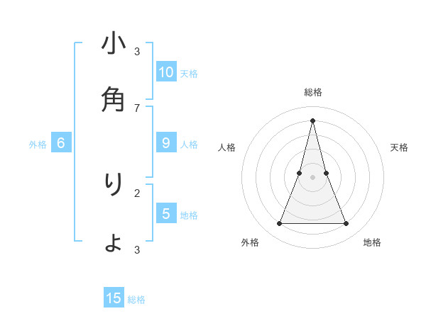 小角 りょさんの総格は15画の4点!