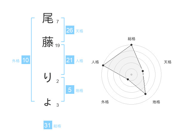 尾藤 りょさんを姓名の画数から五運を鑑定
