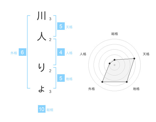 川人 りょさんの天格は5画の4点!