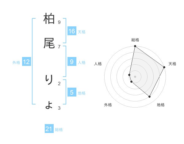 柏尾 りょさんを姓名の画数から五運を鑑定