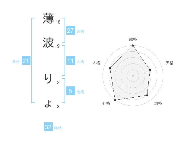薄波 りょさんの外格は21画の5点!