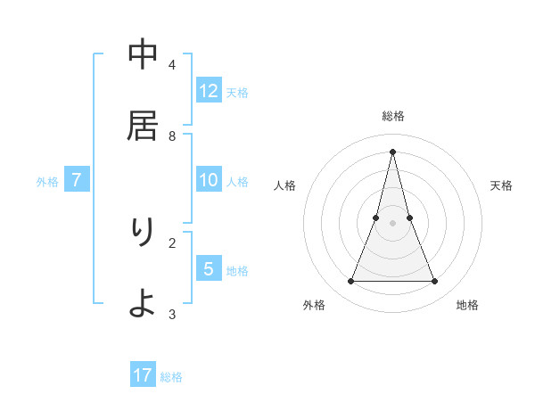 中居 りよさんの総格は17画の4点!