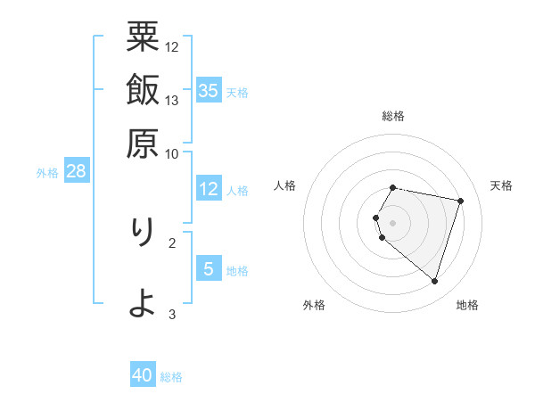 粟飯原 りよさんの天格は35画の4点!