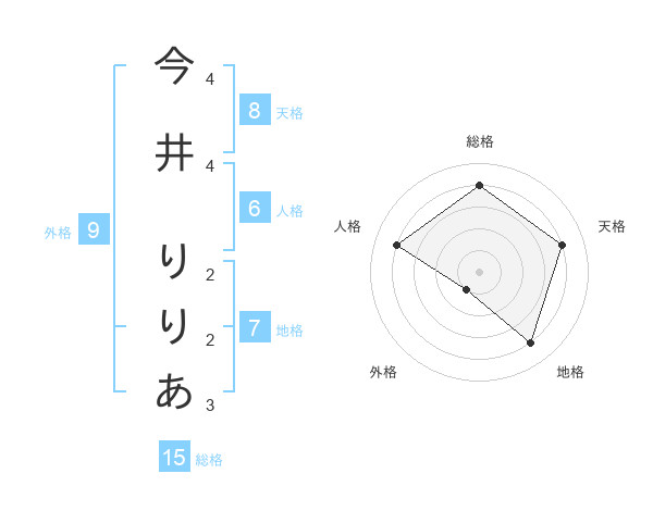 今井 りりあさんの天格は8画の4点!