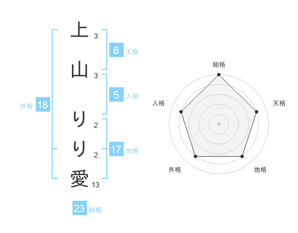 上山 りり愛さんを姓名の画数から五運を鑑定