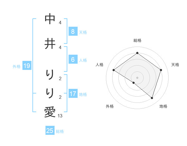 中井 りり愛さんを姓名の画数から五運を鑑定