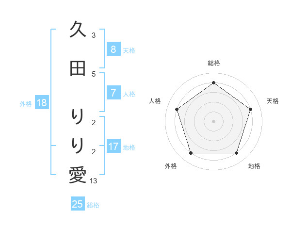 久田 りり愛さんの総格は25画の4点!