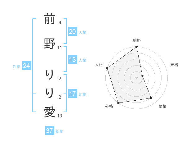 前野 りり愛さんを姓名の画数から五運を鑑定