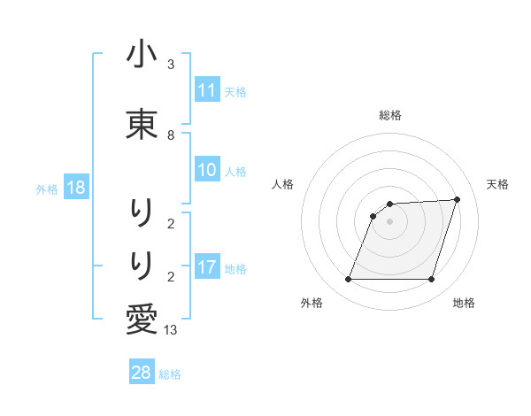 小東 りり愛さんの天格は11画の4点!
