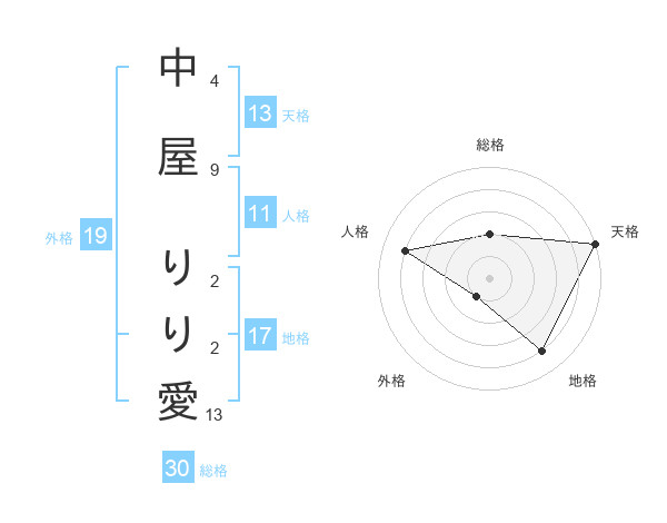 中屋 りり愛さんを姓名の画数から五運を鑑定