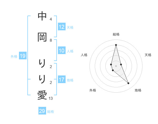 中岡 りり愛さんを姓名の画数から五運を鑑定