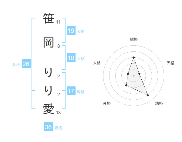笹岡 りり愛さんの地格は17画の4点!