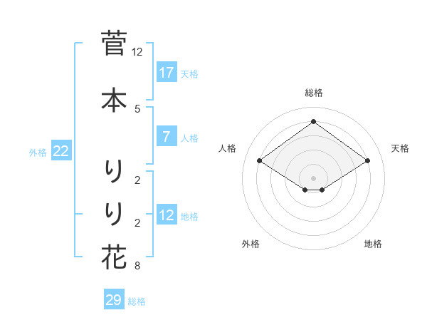 菅本 りり花さんを姓名の画数から五運を鑑定