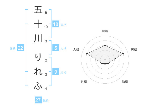 五十川 りれふさんを姓名の画数から五運を鑑定