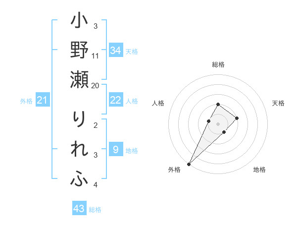 小野瀬 りれふさんを姓名の画数から五運を鑑定