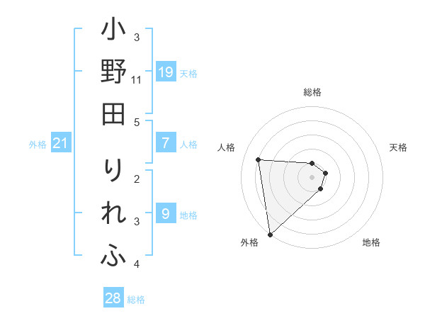 小野田 りれふさんを姓名の画数から五運を鑑定