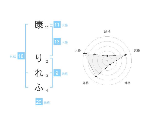 康 りれふさんの総格は20画の1点!