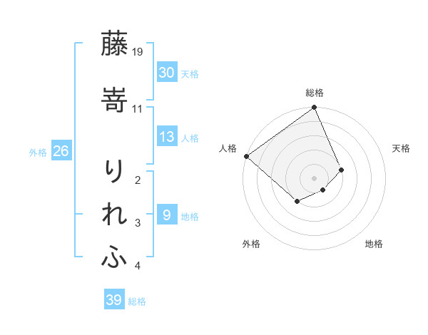藤嵜 りれふさんを姓名の画数から五運を鑑定