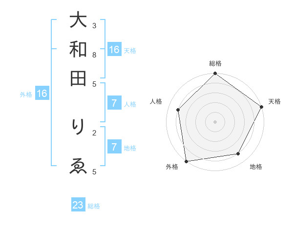 大和田 りゑさんを姓名の画数から五運を鑑定