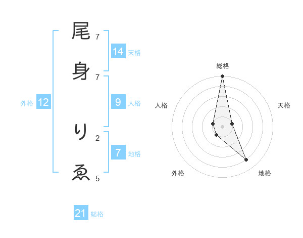 尾身 りゑさんの総格は21画の5点!