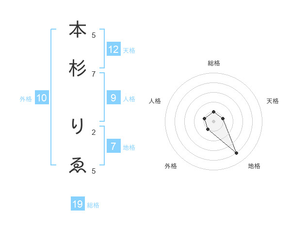 本杉 りゑさんを姓名の画数から五運を鑑定