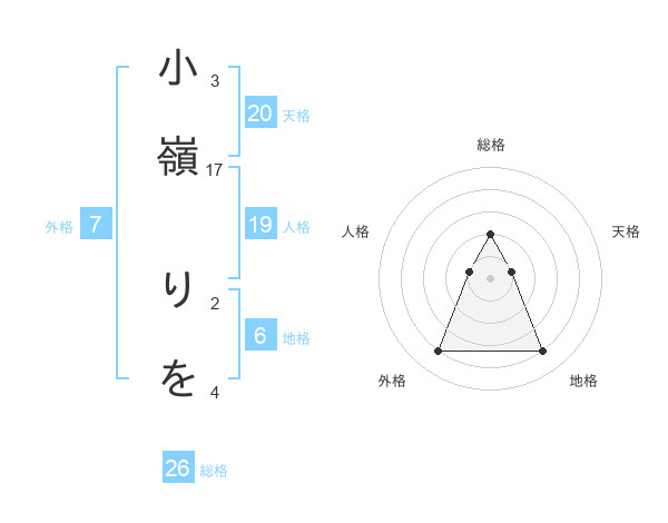 小嶺 りをさんを姓名の画数から五運を鑑定