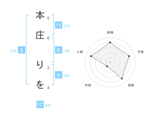 本庄 りをさんを姓名の画数から五運を鑑定