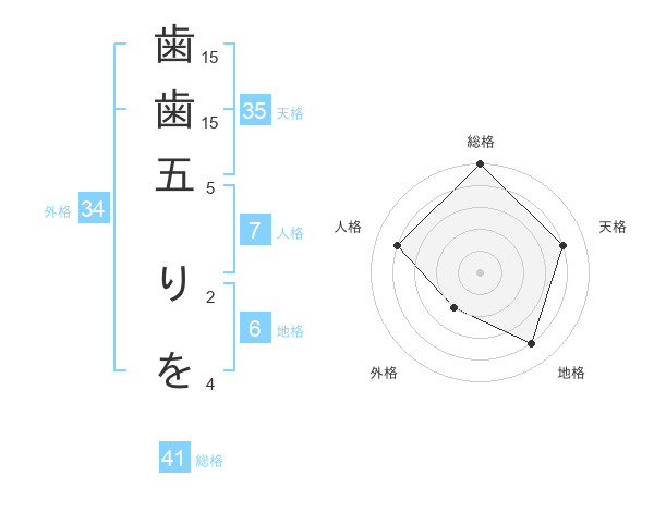歯歯五 りをさんを姓名の画数から五運を鑑定