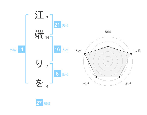 江端 りをさんの天格は21画の5点!
