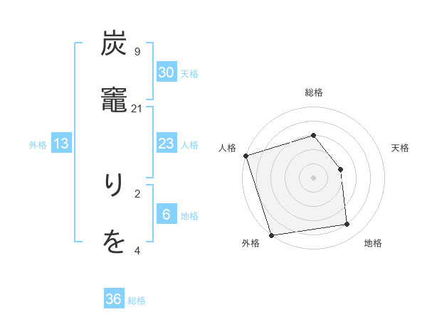 炭竈 りをさんの外格は13画の5点!