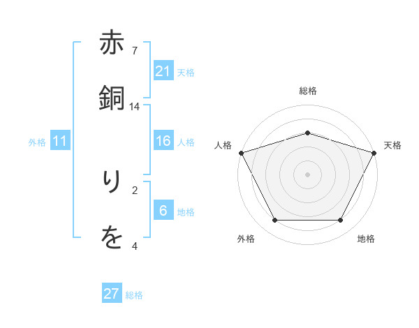 赤銅 りをさんを姓名の画数から五運を鑑定